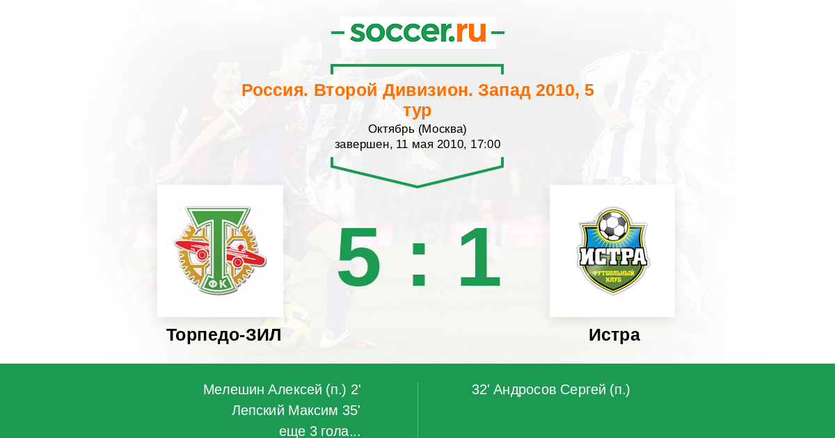 Торпедо-ЗИЛ - Истра: обзор матча 11 мая 2010