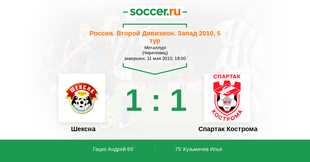 Шексна - Спартак Кострома: обзор матча 11 мая 2010