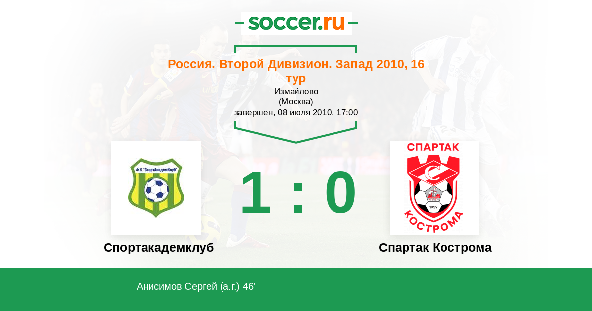 Спортакадемклуб - Спартак Кострома: обзор матча 8 июля 2010