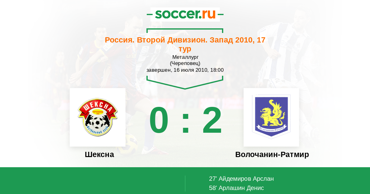 Шексна - Волочанин-Ратмир: обзор матча 16 июля 2010