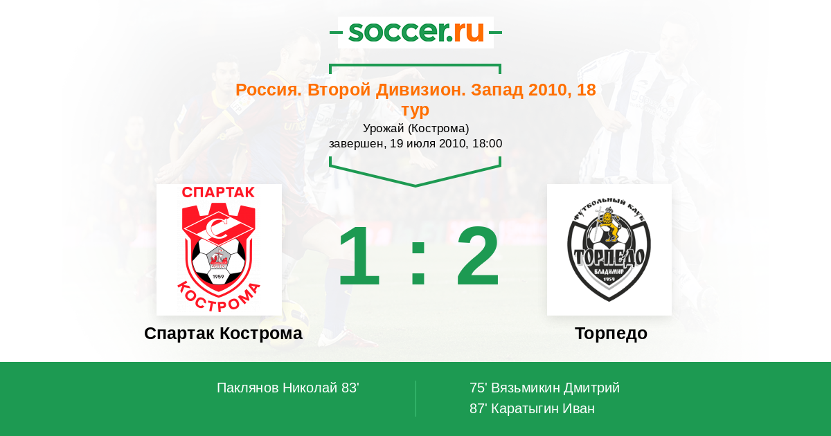 Спартак Кострома - Торпедо: обзор матча 19 июля 2010