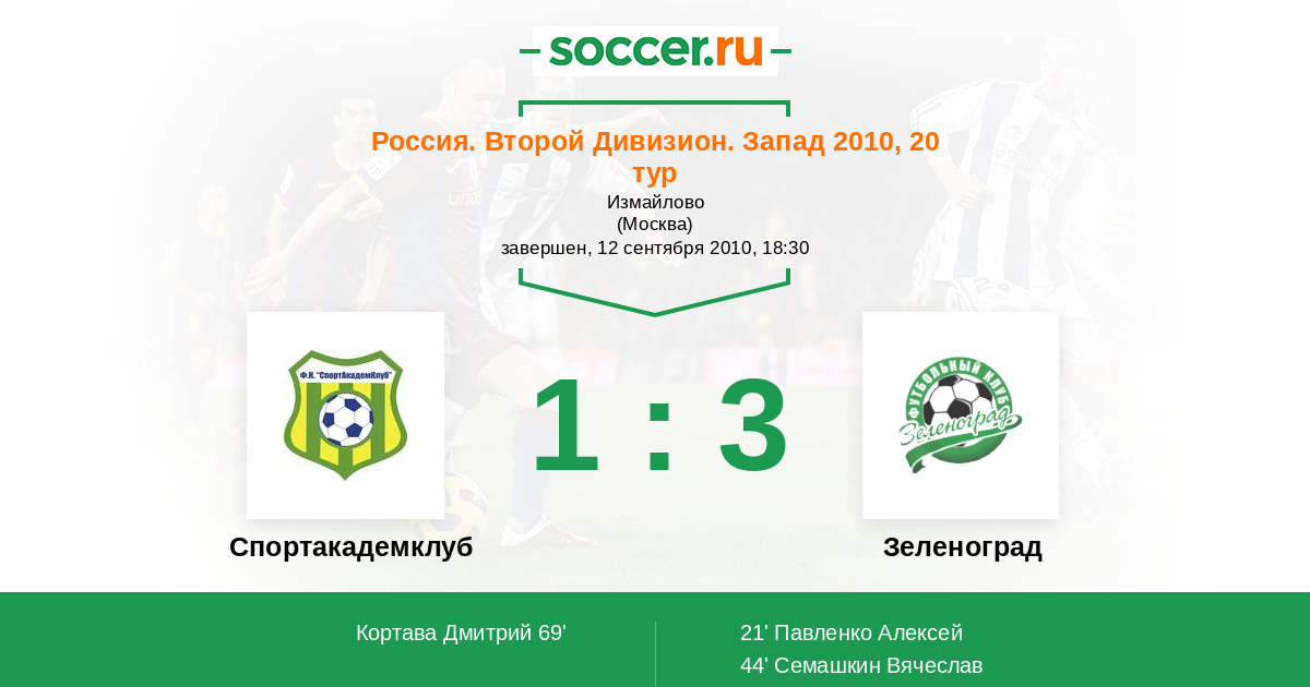 Спортакадемклуб - Зеленоград: обзор матча 12 сентября 2010