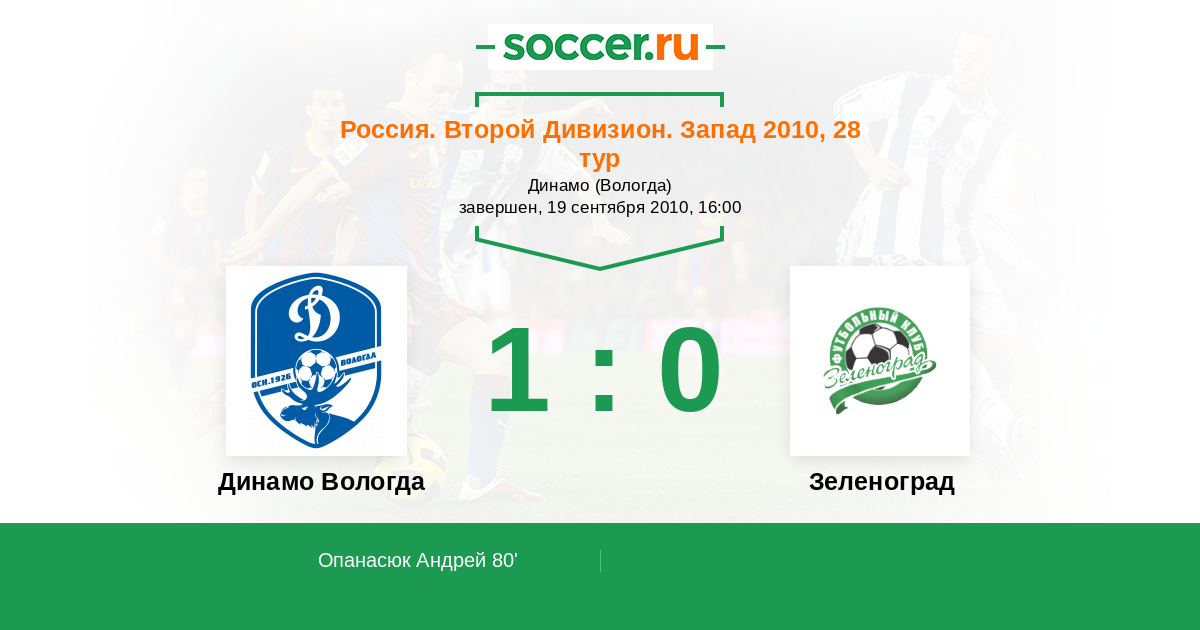 Динамо Вологда - Зеленоград: обзор матча 19 сентября 2010