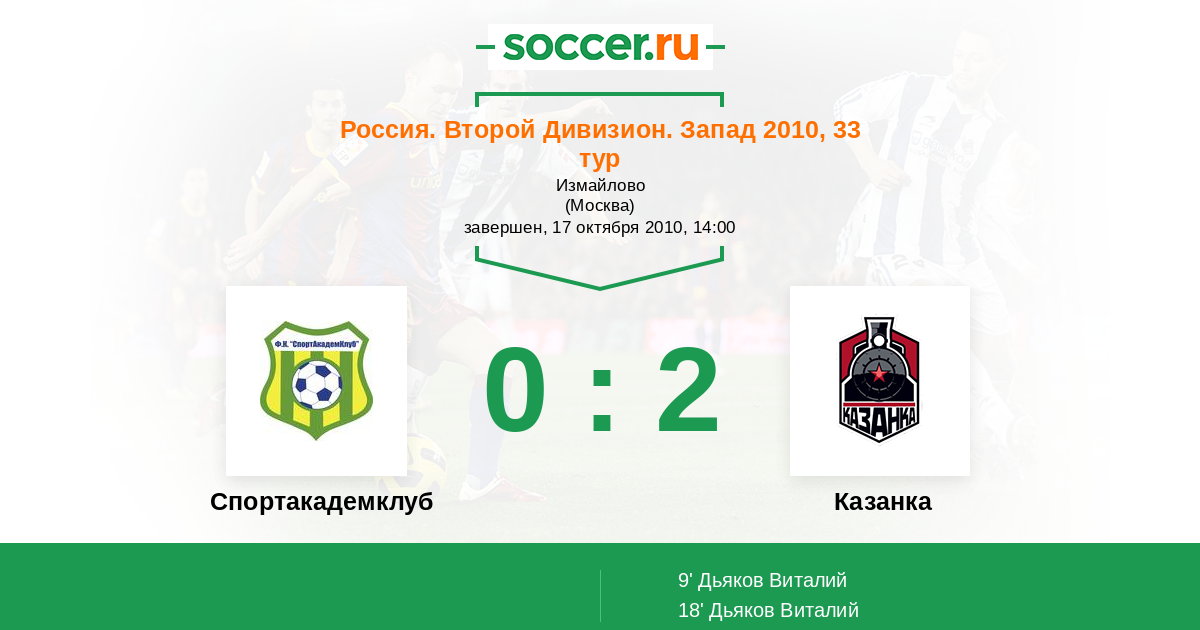 Спортакадемклуб - Локомотив-2: обзор матча 17 октября 2010