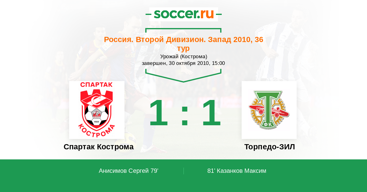 Спартак Кострома - Торпедо-ЗИЛ: обзор матча 30 октября 2010