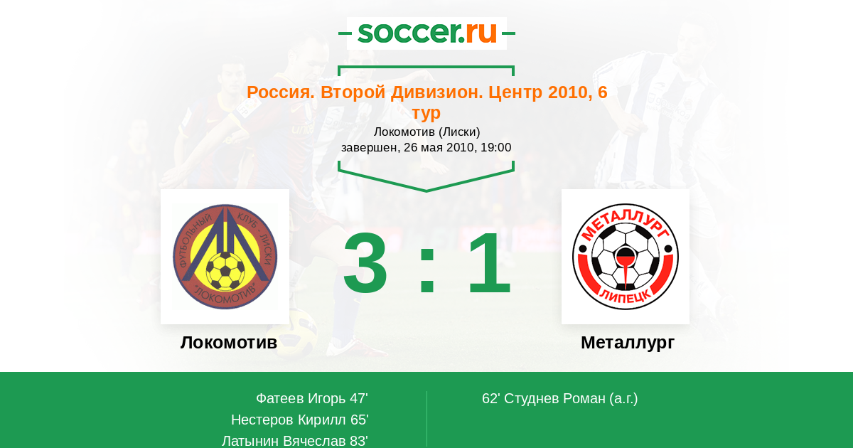 Локомотив - Металлург: обзор матча 26 мая 2010