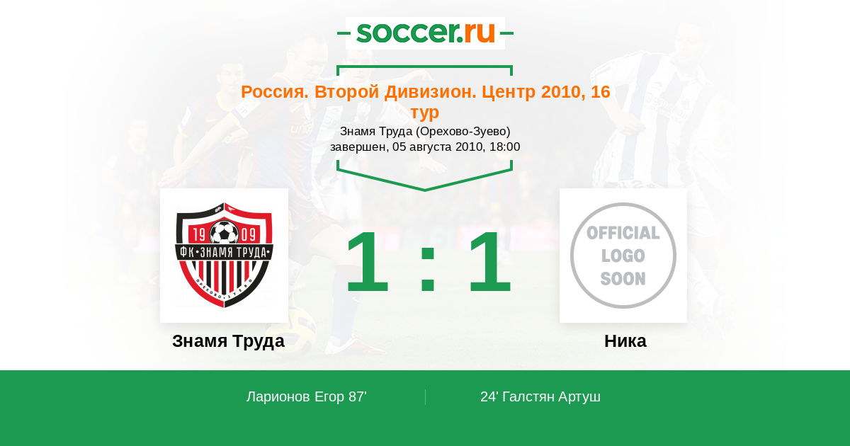 Знамя Труда - Ника: обзор матча 5 августа 2010
