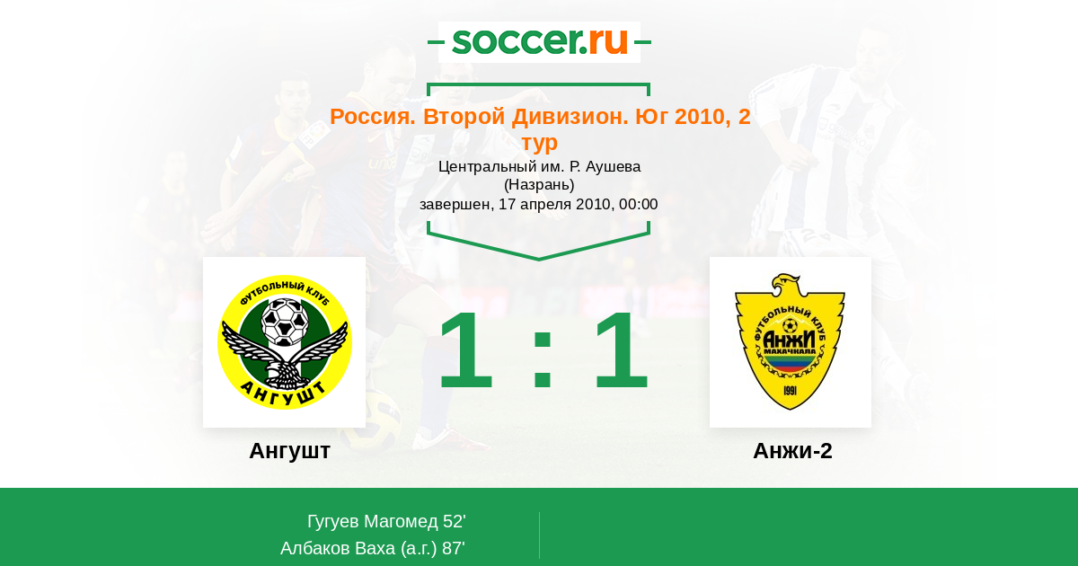 Ангушт - Дагдизель: обзор матча 17 апреля 2010