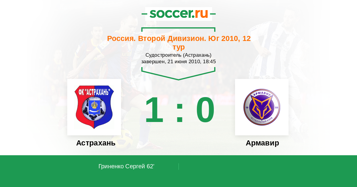 Астрахань - Торпедо Армавир: обзор матча 21 июня 2010