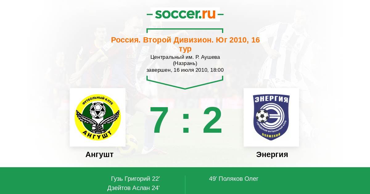Ангушт - Энергия: обзор матча 16 июля 2010