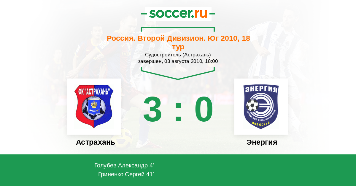 Астрахань - Энергия: обзор матча 3 августа 2010