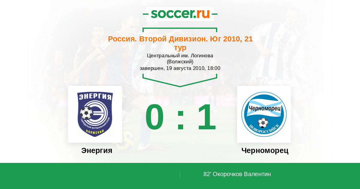 Энергия - Черноморец: обзор матча 19 августа 2010