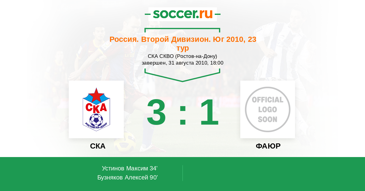 СКА - ФАЮР: обзор матча 31 августа 2010