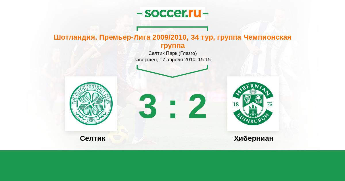 Селтик - Хиберниан: обзор матча 17 апреля 2010