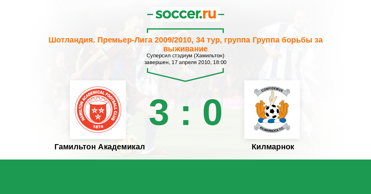 Гамильтон Академикал - Килмарнок: обзор матча 17 апреля 2010