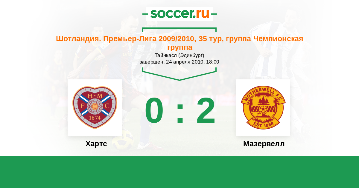 Хартс - Мазервелл: обзор матча 24 апреля 2010