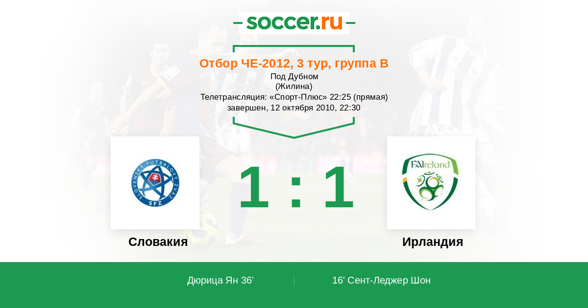 Словакия - Ирландия: обзор матча 12 октября 2010