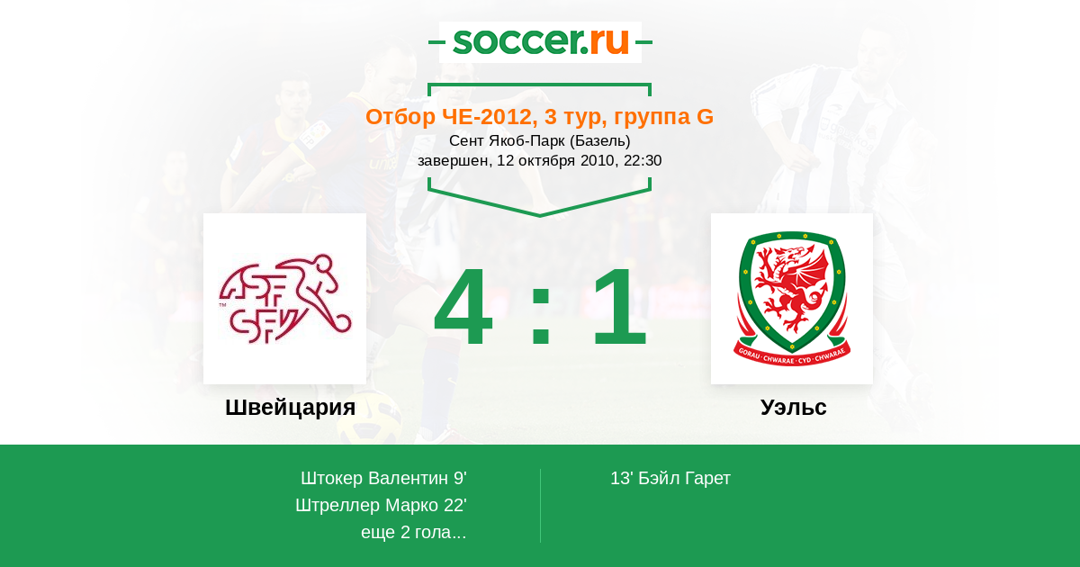Швейцария - Уэльс: обзор матча 12 октября 2010