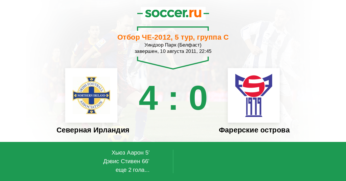 Северная Ирландия - Фарерские острова: обзор матча 10 августа 2011