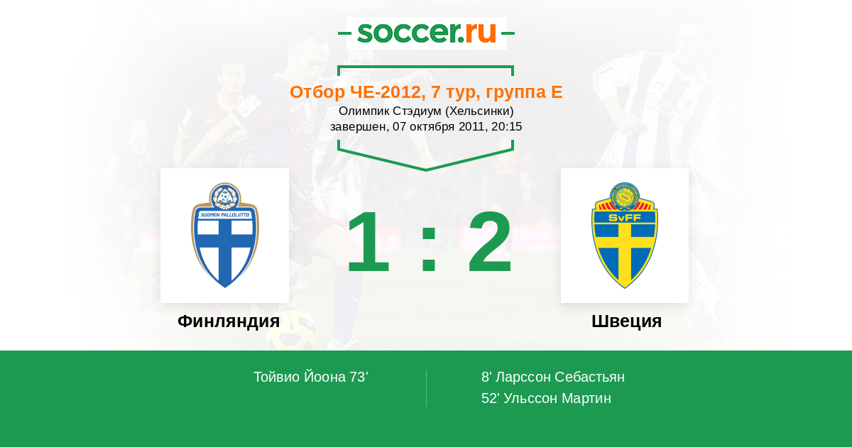 Финляндия - Швеция: обзор матча 7 октября 2011