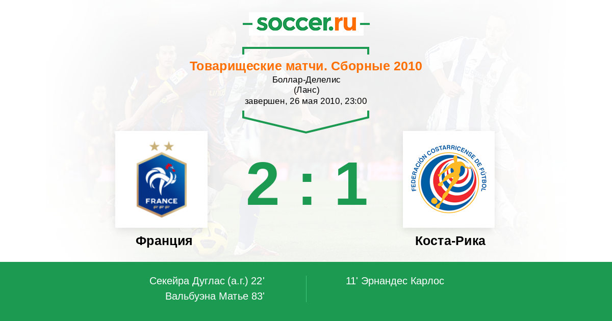 Франция - Коста-Рика: обзор матча 26 мая 2010