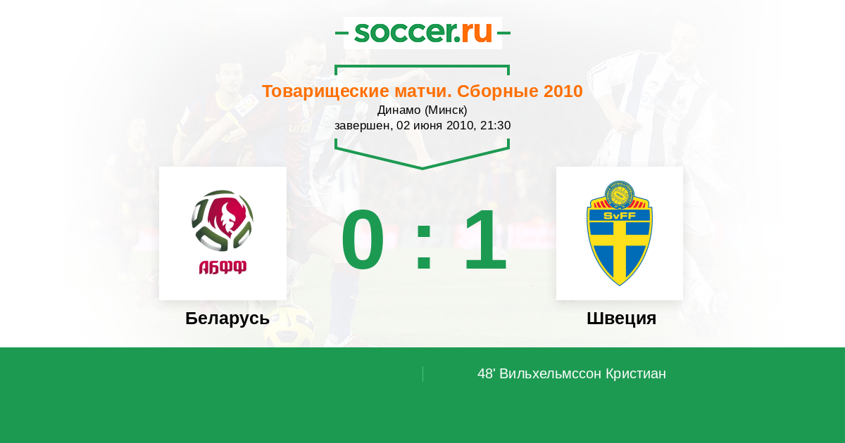 Беларусь - Швеция: обзор матча 2 июня 2010