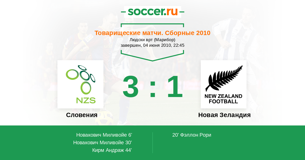 Словения - Новая Зеландия: обзор матча 4 июня 2010