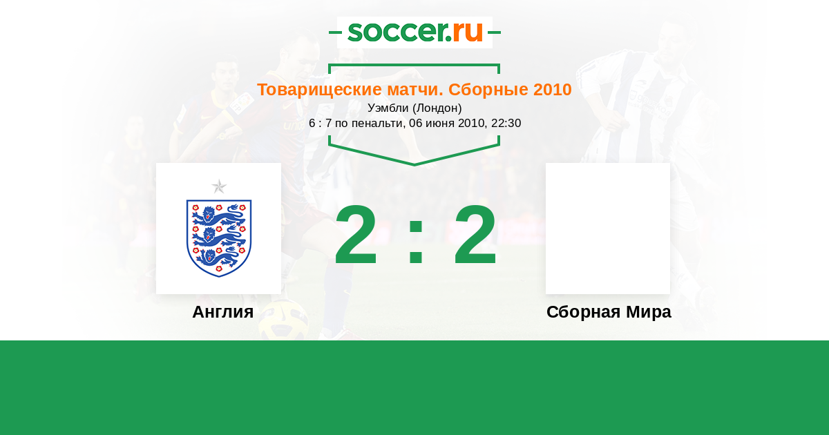 Англия - Сборная Мира: обзор матча 6 июня 2010