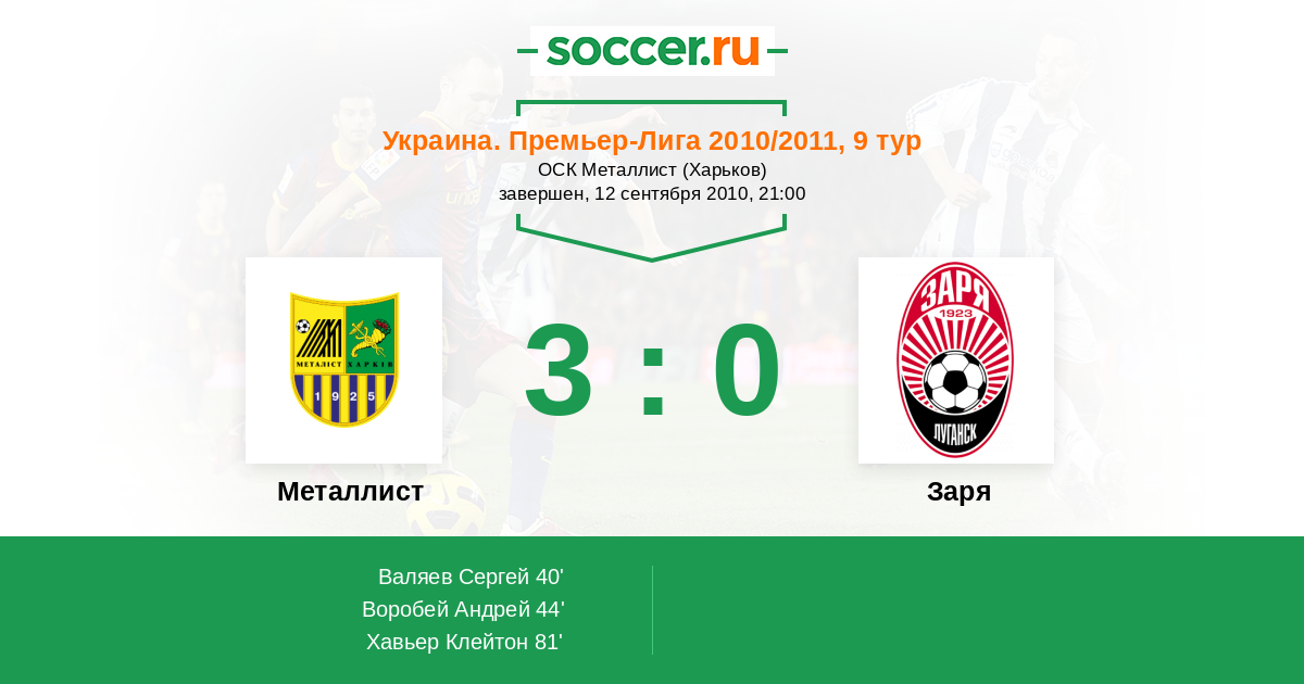 Металлист - Заря: обзор матча 12 сентября 2010