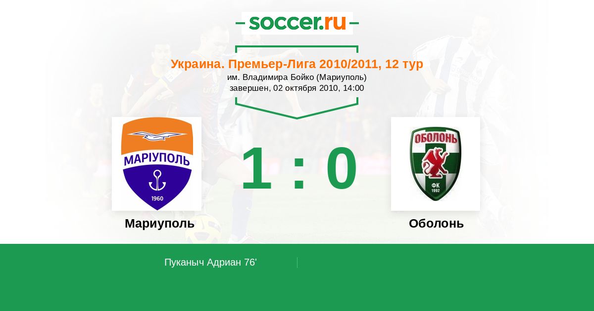 Ильичевец - Оболонь: обзор матча 2 октября 2010