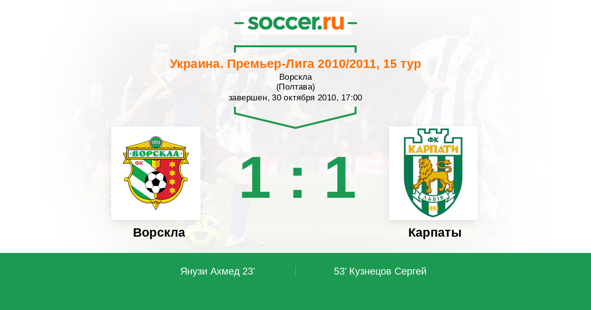 Ворскла - Карпаты: обзор матча 30 октября 2010