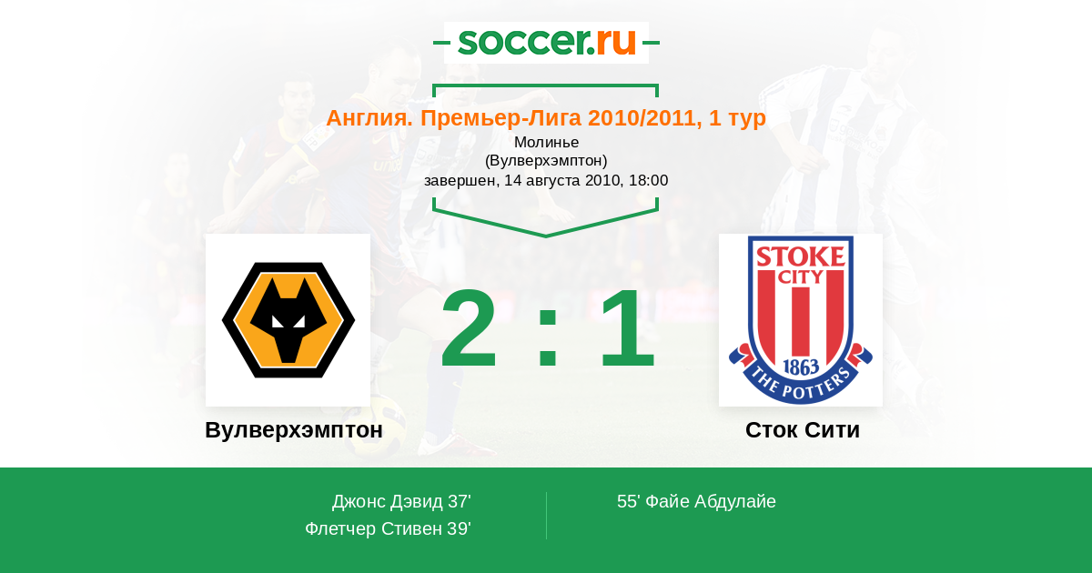 Вулверхэмптон - Сток Сити: обзор матча 14 августа 2010