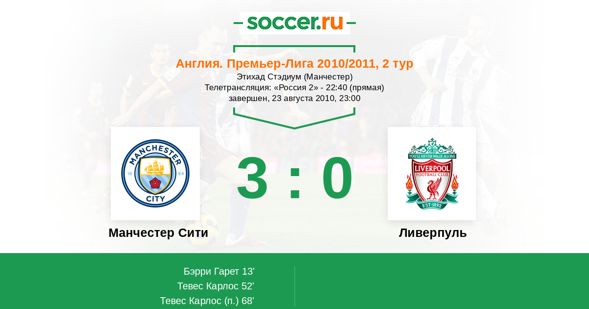 Манчестер Сити - Ливерпуль: обзор матча 23 августа 2010