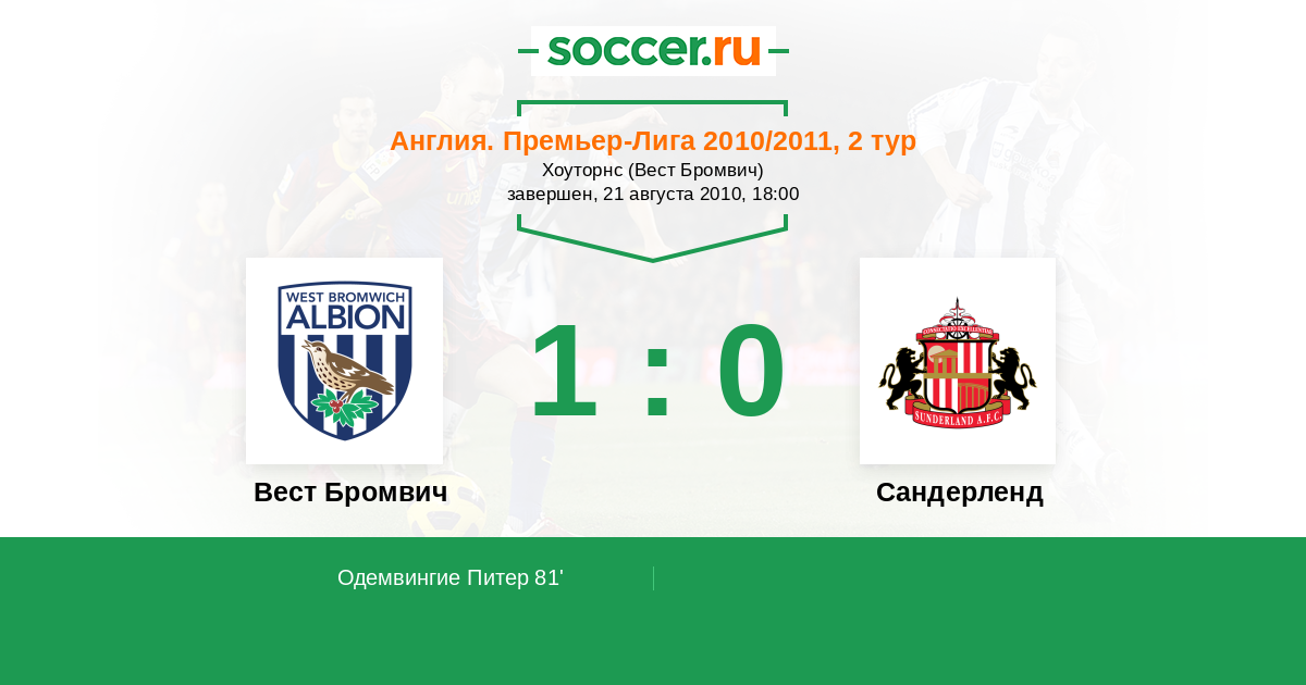 Вест Бромвич - Сандерленд: обзор матча 21 августа 2010