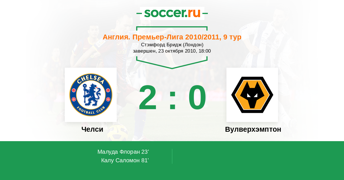 Челси - Вулверхэмптон: обзор матча 23 октября 2010