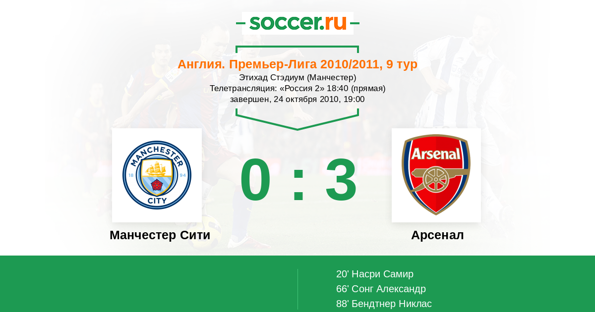 Манчестер Сити - Арсенал: обзор матча 24 октября 2010