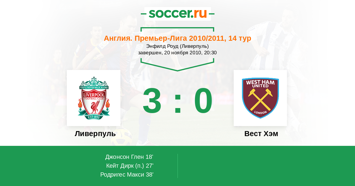 Ливерпуль - Вест Хэм: обзор матча 20 ноября 2010