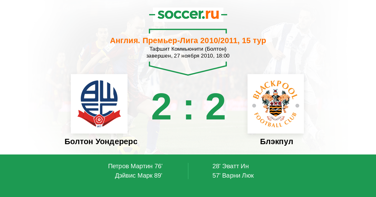 Болтон Уондерерс - Блэкпул: обзор матча 27 ноября 2010