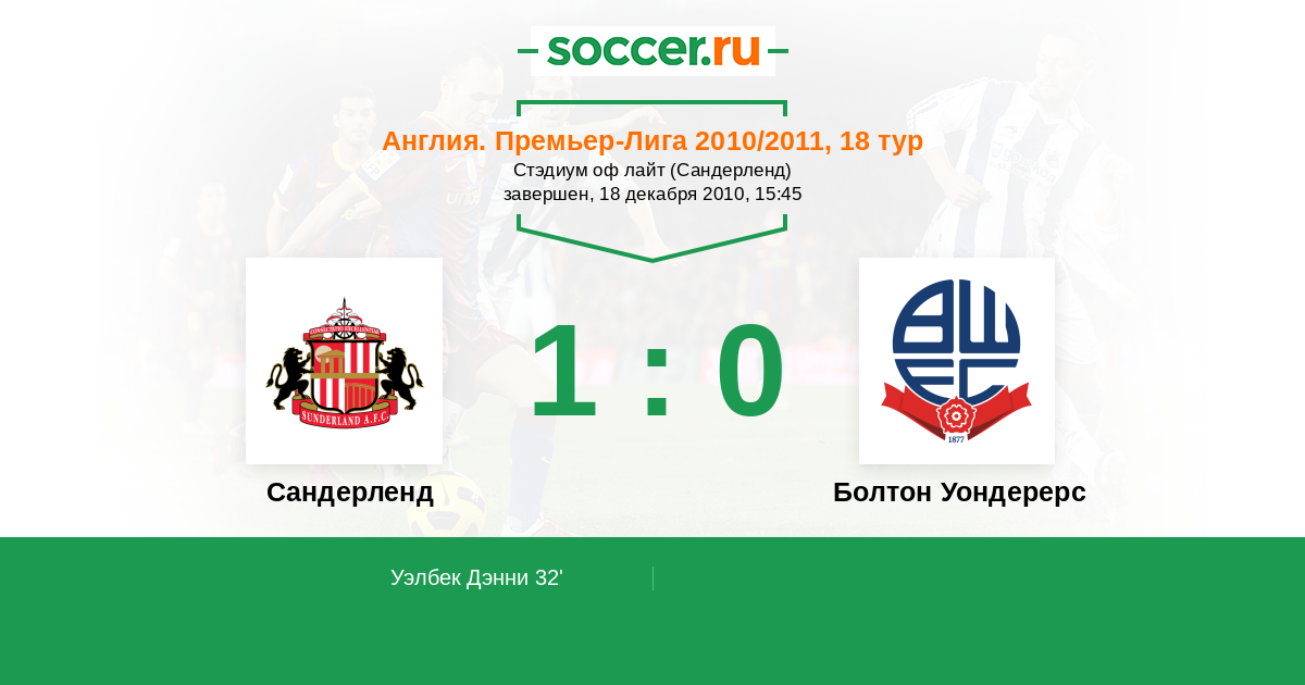 Сандерленд - Болтон Уондерерс: обзор матча 18 декабря 2010