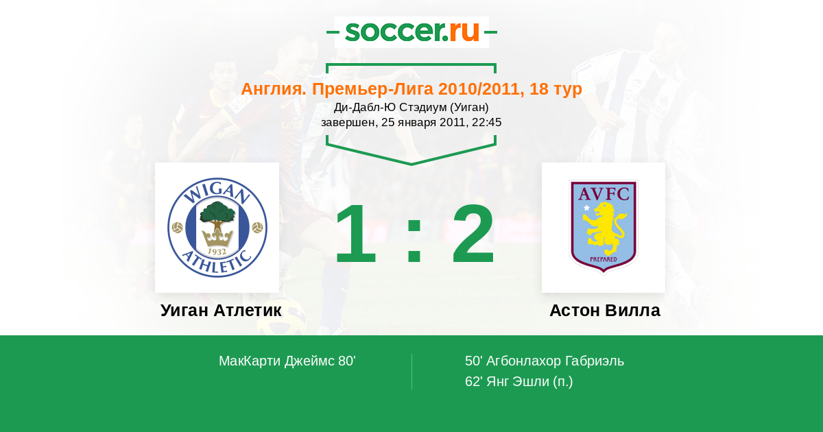 Уиган Атлетик - Астон Вилла: обзор матча 25 января 2011