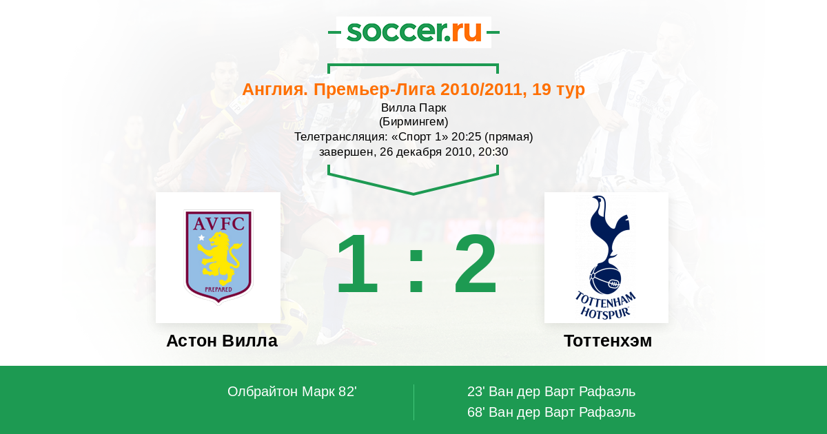 Астон Вилла - Тоттенхэм: обзор матча 26 декабря 2010