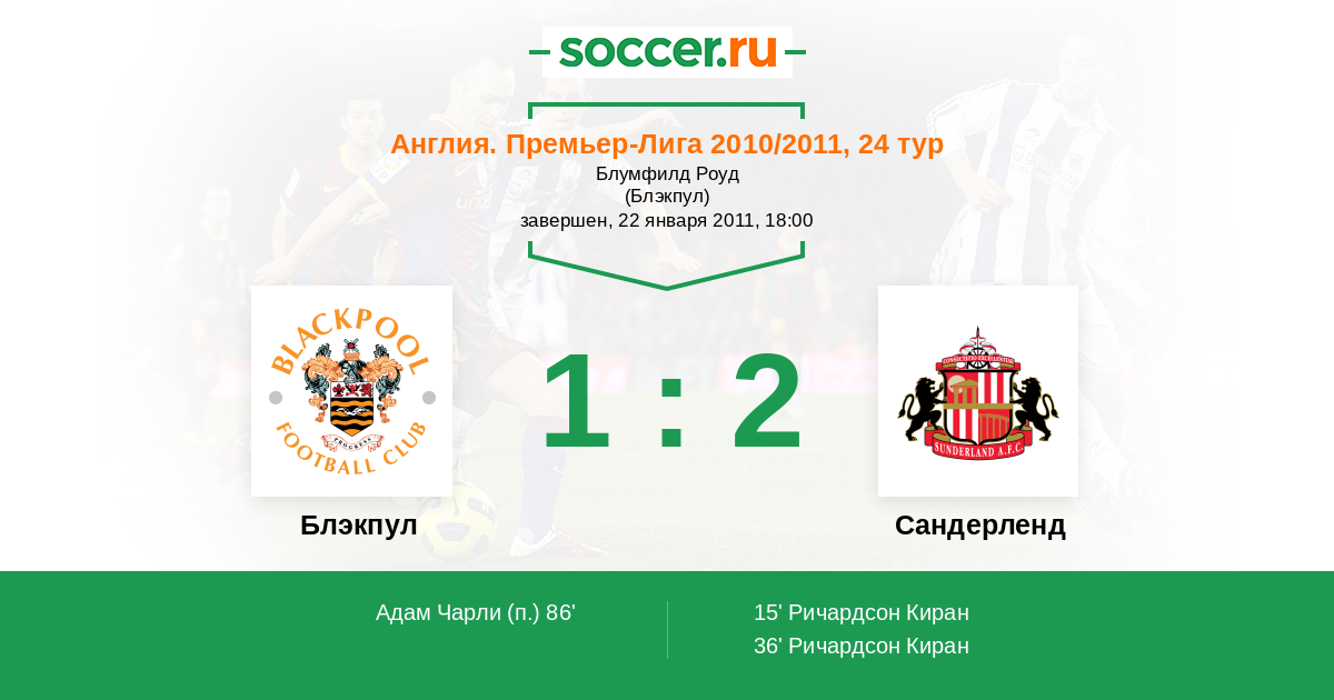 Блэкпул - Сандерленд: обзор матча 22 января 2011