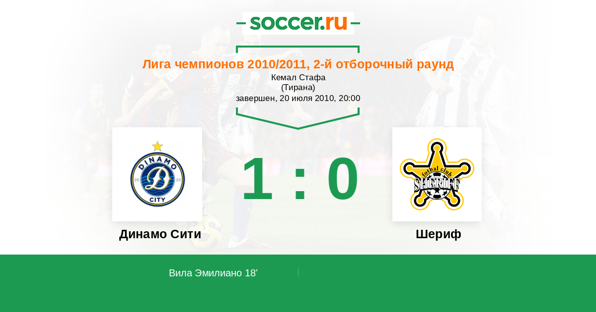 Динамо Сити - Шериф: обзор матча 20 июля 2010