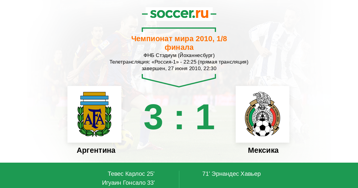 Аргентина - Мексика: обзор матча 27 июня 2010