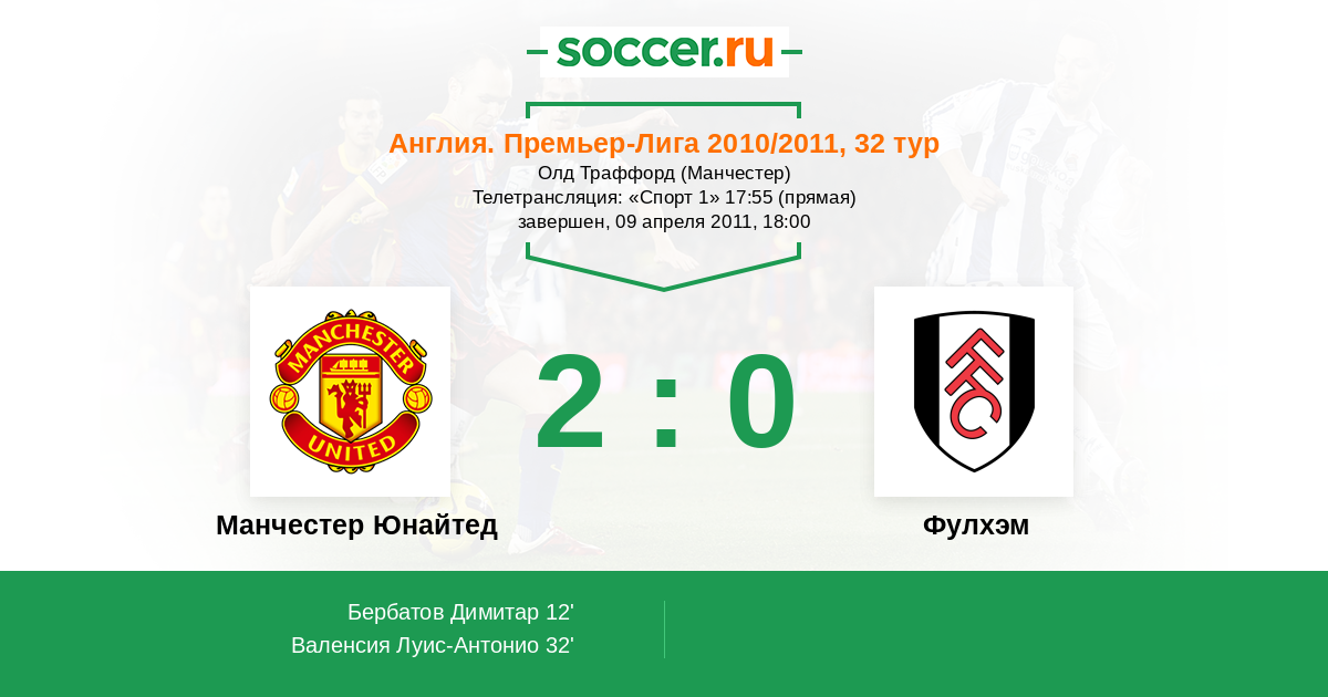 Манчестер Юнайтед - Фулхэм: обзор матча 9 апреля 2011