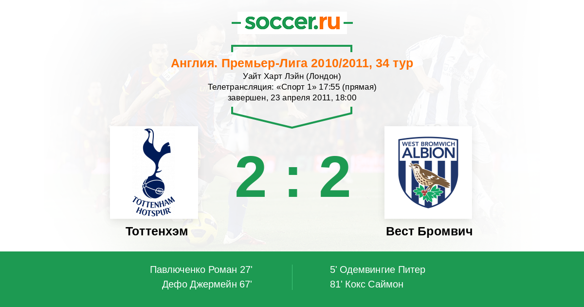 Тоттенхэм - Вест Бромвич: обзор матча 23 апреля 2011