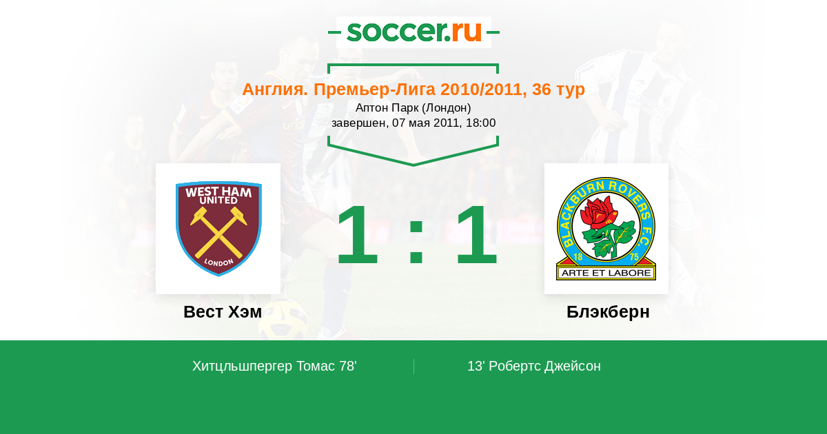 Вест Хэм - Блэкберн: обзор матча 7 мая 2011