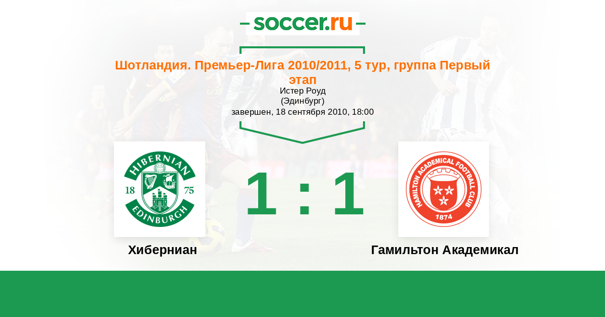 Хиберниан - Гамильтон Академикал: обзор матча 18 сентября 2010