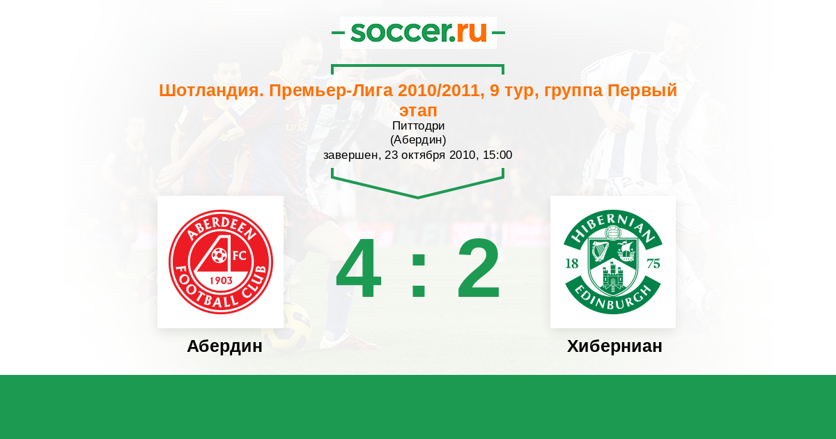 Абердин - Хиберниан: обзор матча 23 октября 2010