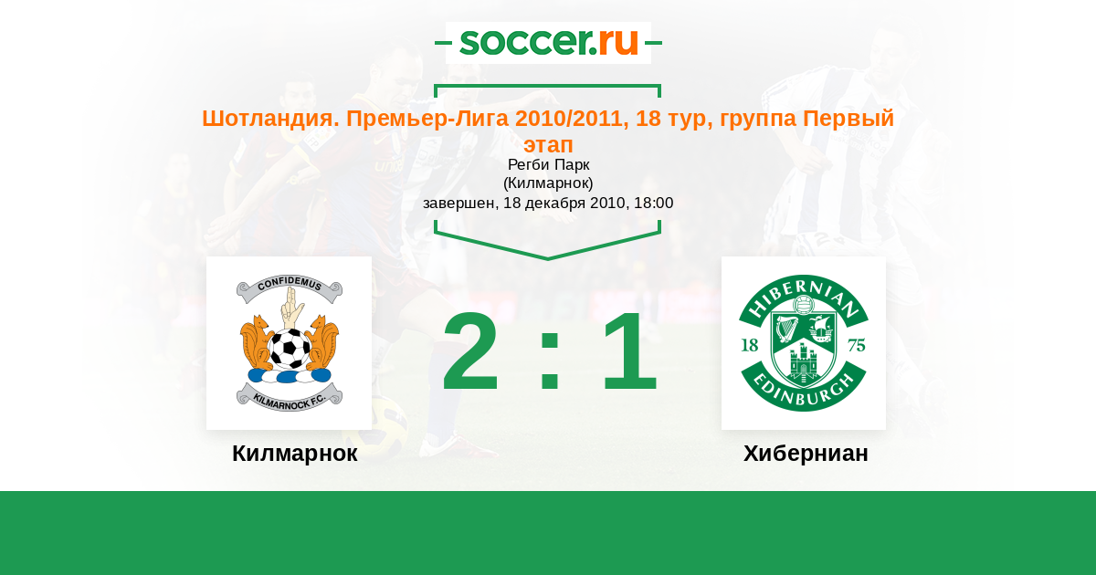 Килмарнок - Хиберниан: обзор матча 18 декабря 2010